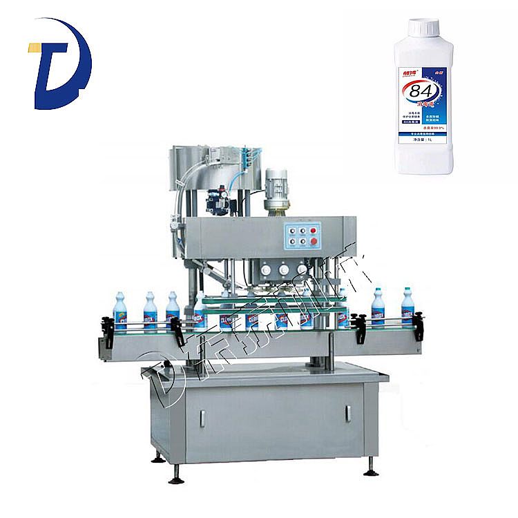 耐腐蝕抗酸堿DT-SG型腐蝕液灌裝機(jī)可與自動理瓶機(jī)、自動旋蓋機(jī)、標(biāo)簽貼標(biāo)或套標(biāo)機(jī)、裝箱打包機(jī)組成灌裝流水線。